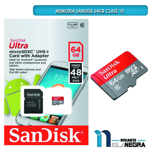 MEMORIA SD SANDISK HD 64GB CLASE 10